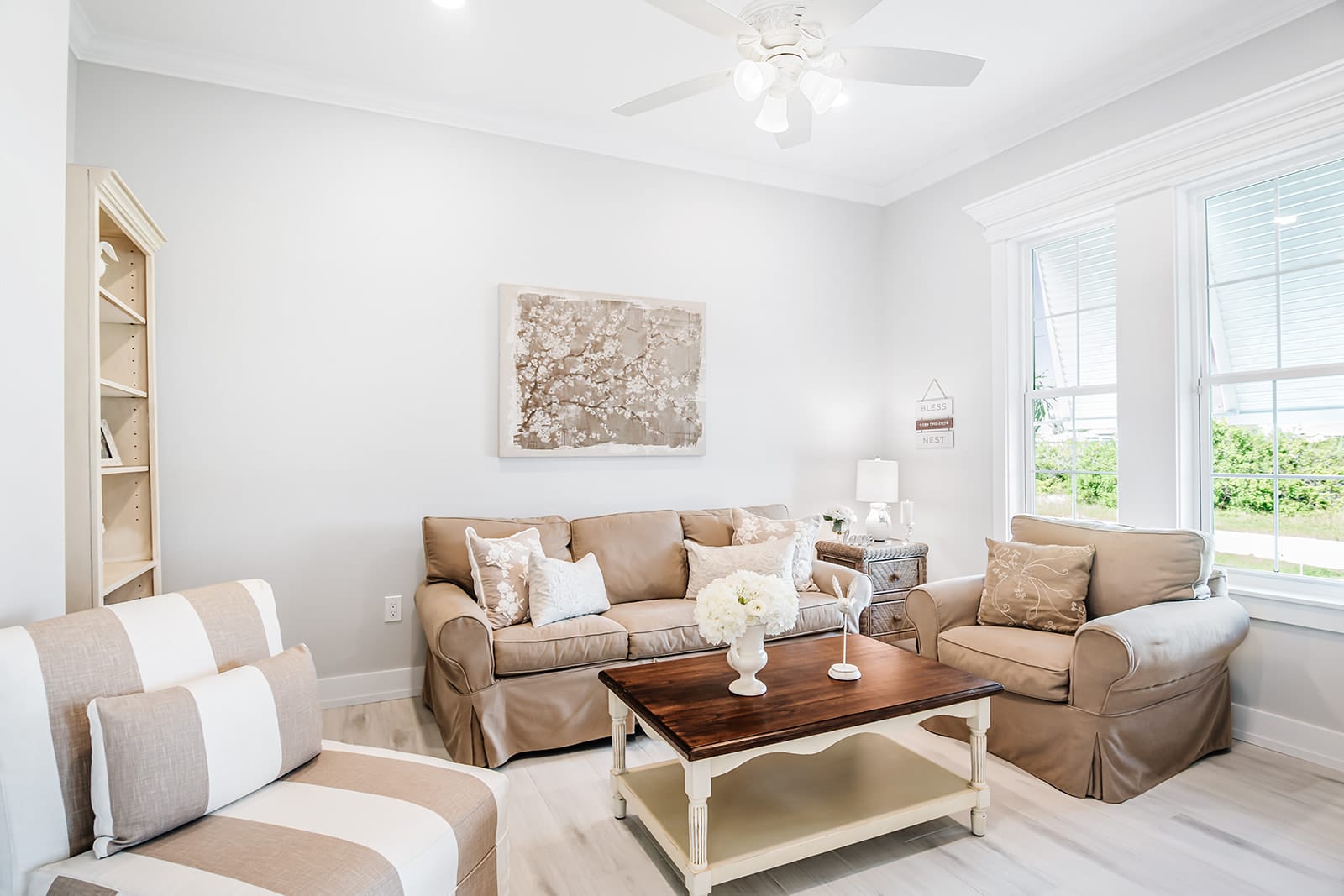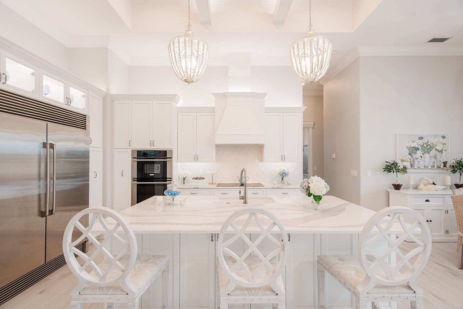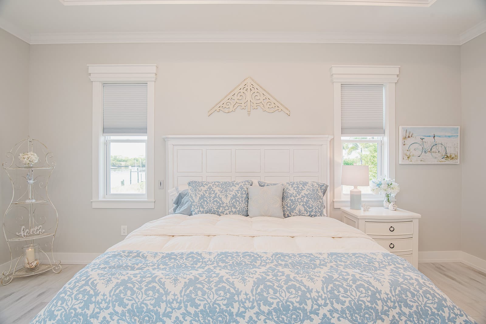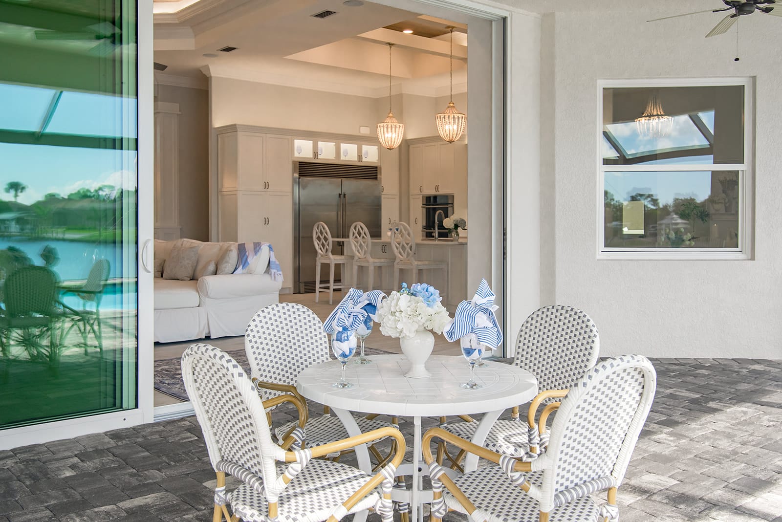Oversized windows and sliding glass doors bring in abundant natural light while connecting the interior to the outdoors. This creates the breezy, airy feel that is a hallmark of Key West–inspired living.