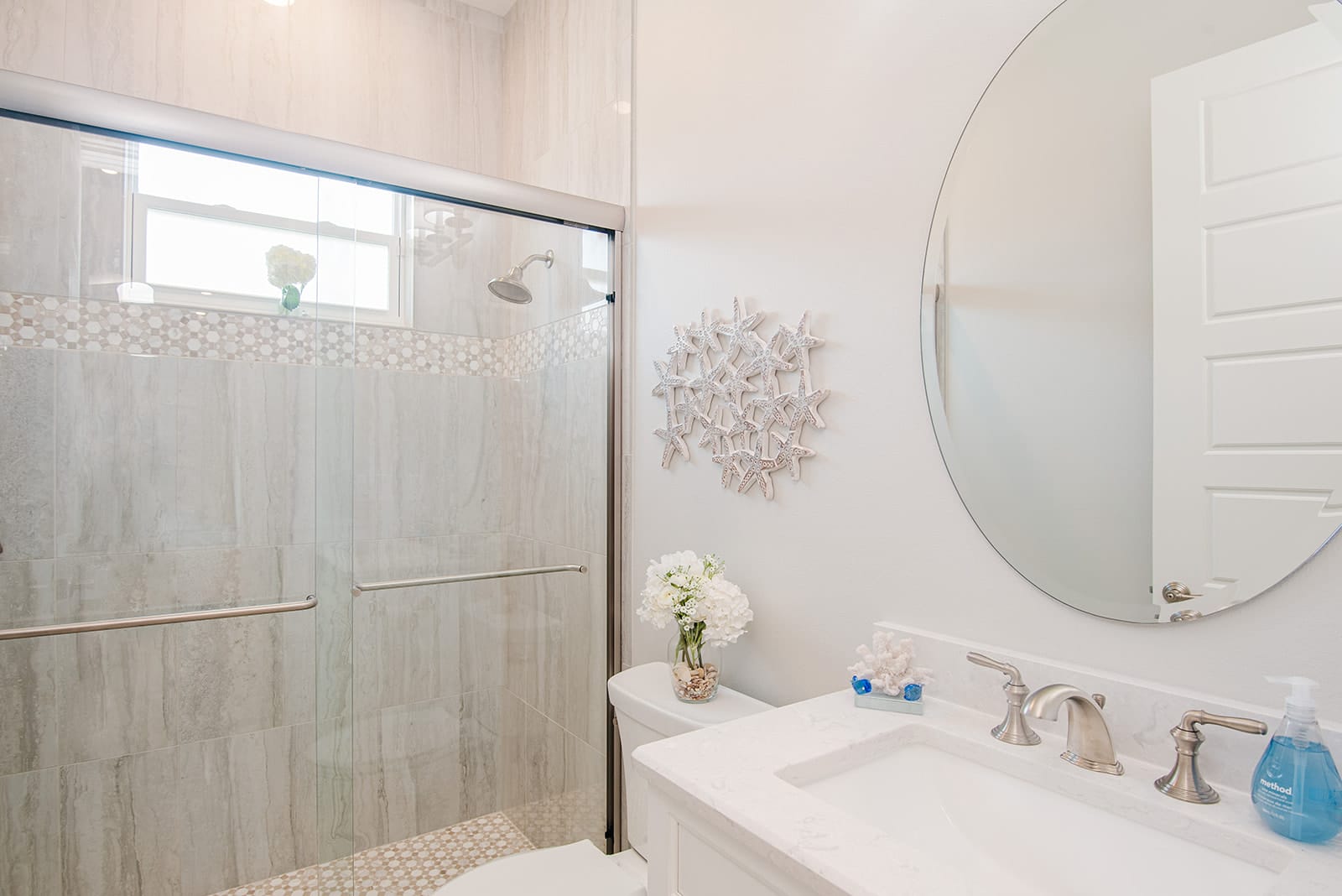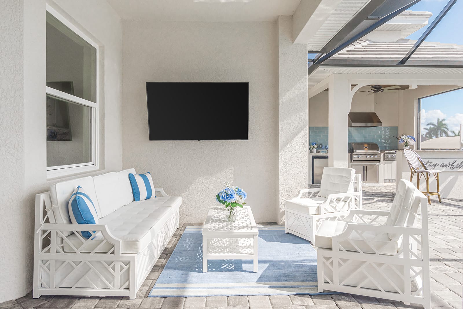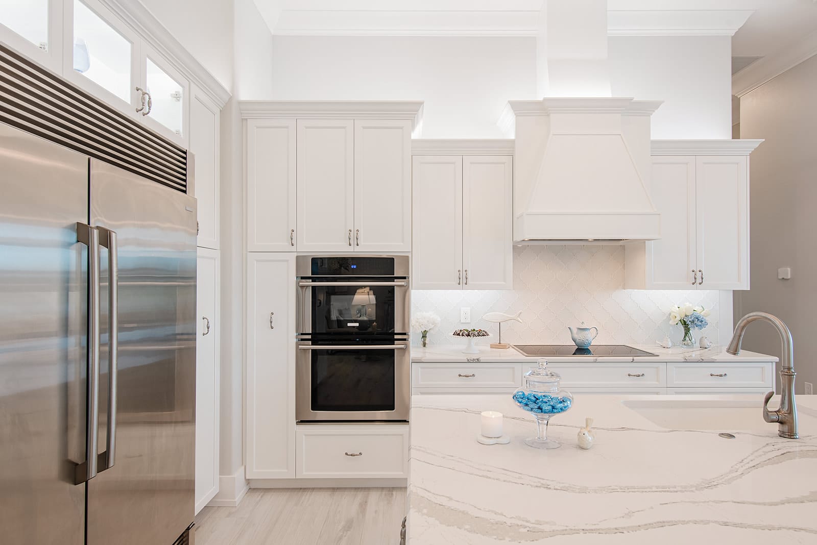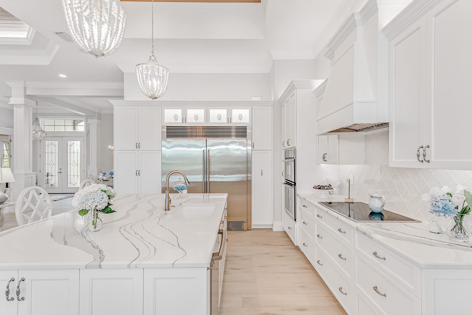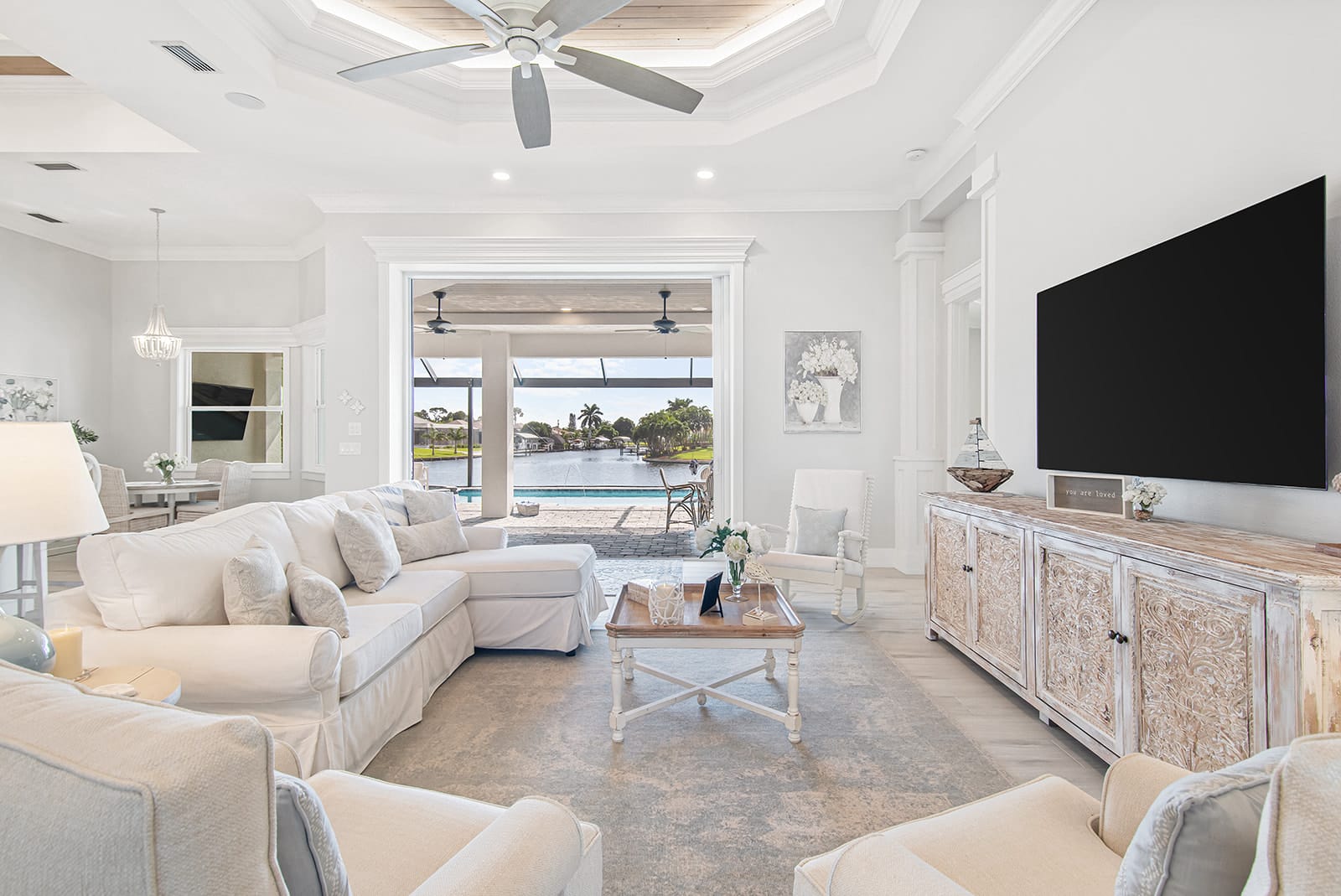 Oversized windows and sliding glass doors bring in abundant natural light while connecting the interior to the outdoors. This creates the breezy, airy feel that is a hallmark of Key West–inspired living.