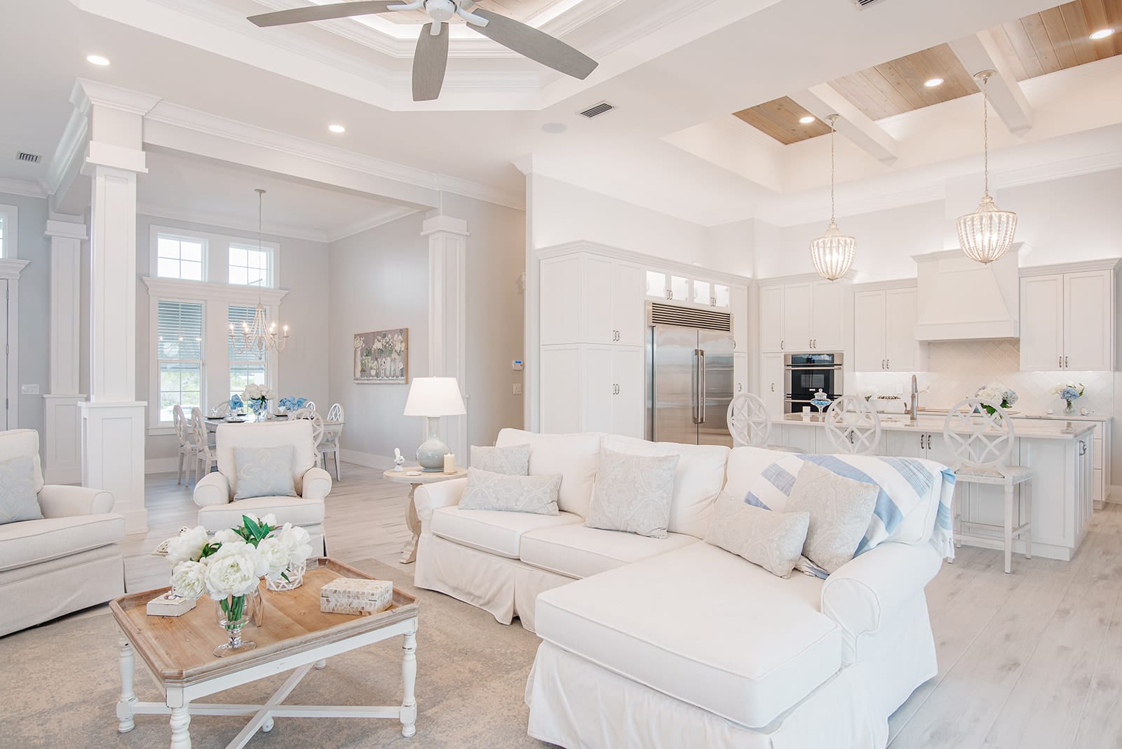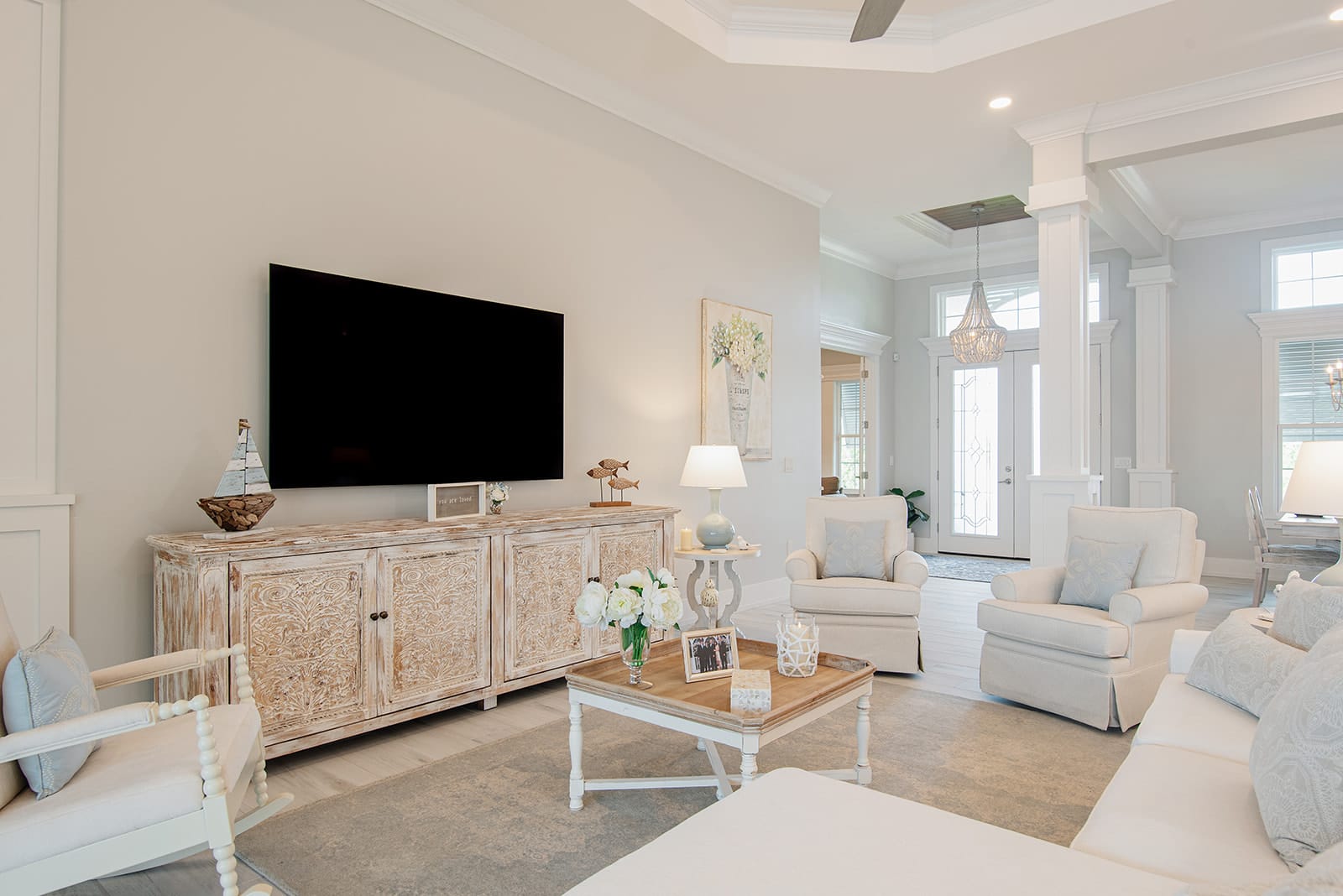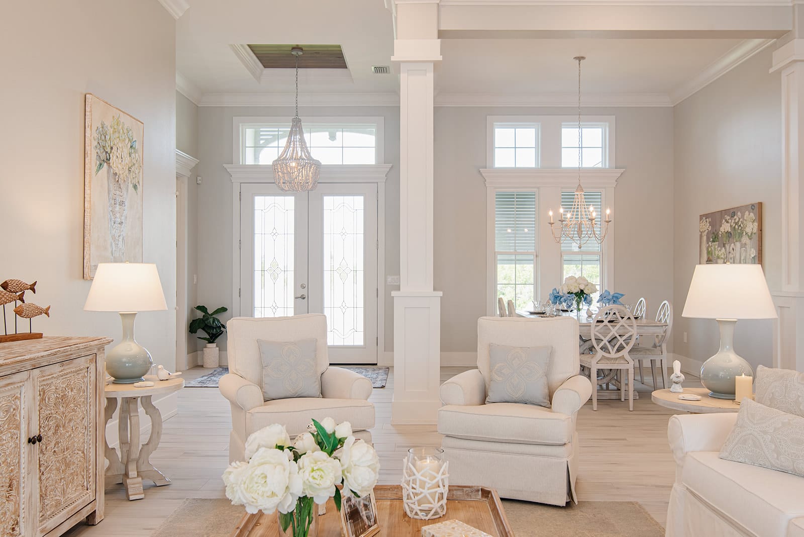 The Hayden Key West Model by Luke Brothers Custom Homes blends the charm of coastal architecture with the convenience of an open, functional floor plan. From the entryway, the home opens into expansive living areas that flow seamlessly from the kitchen to the dining and great room.