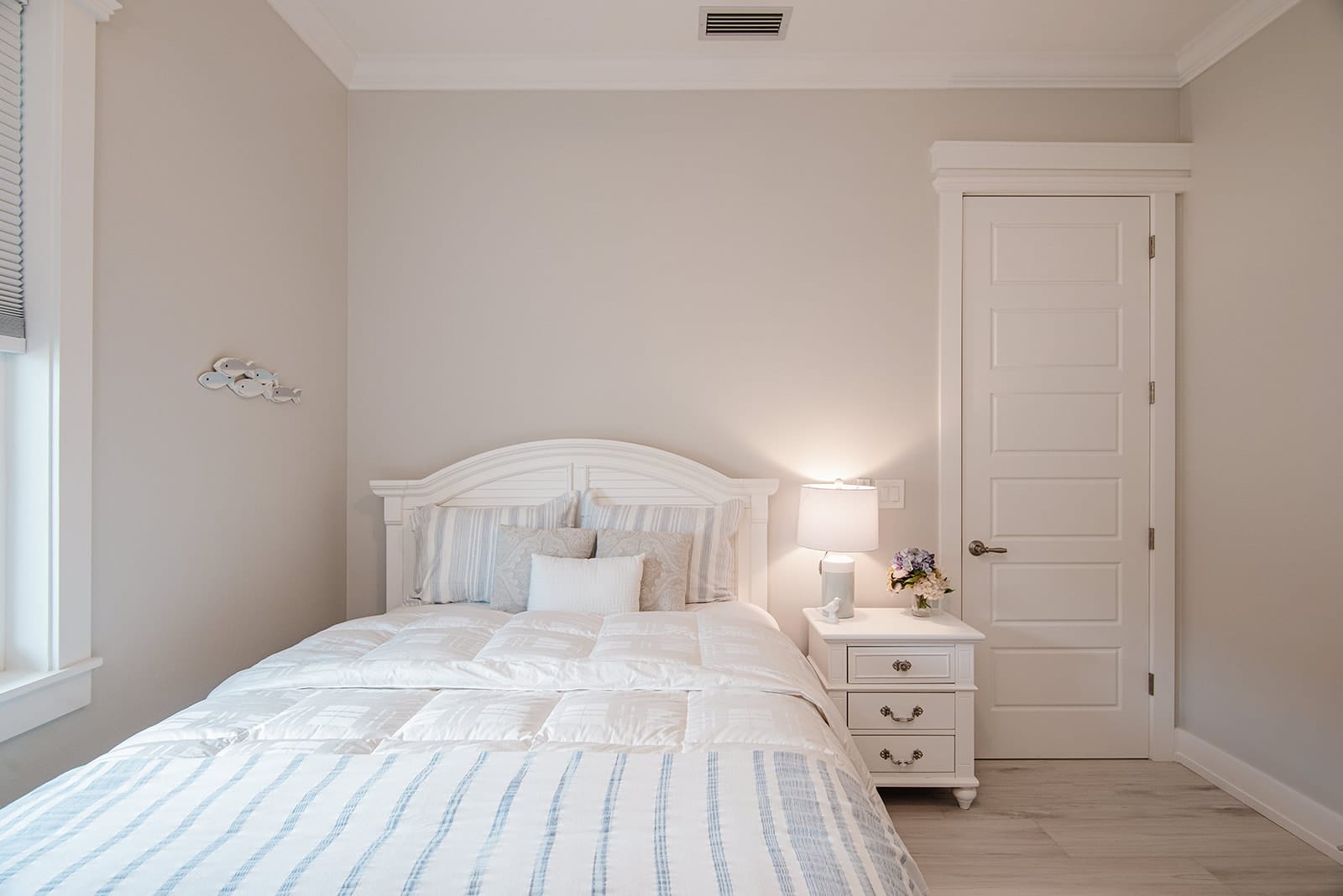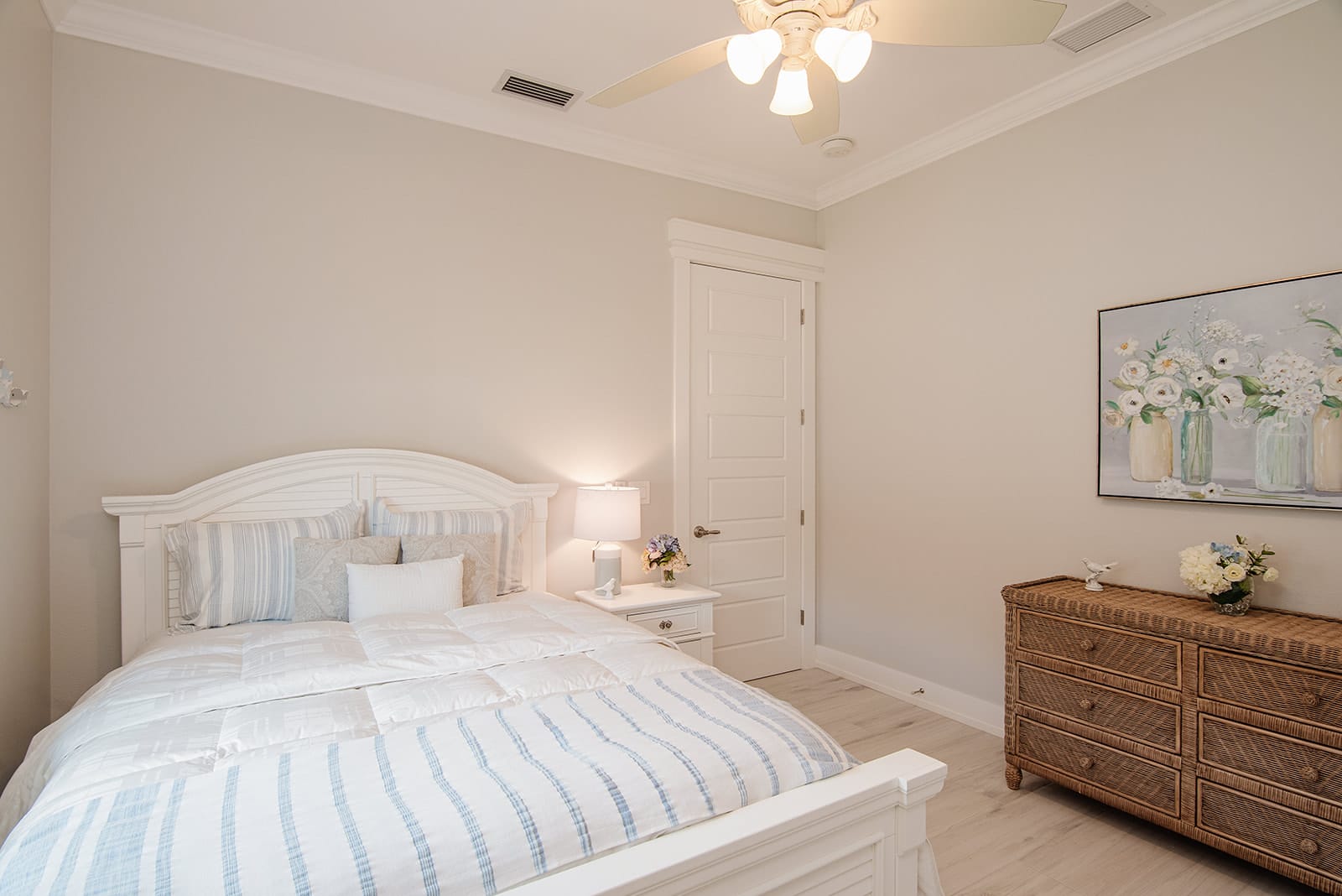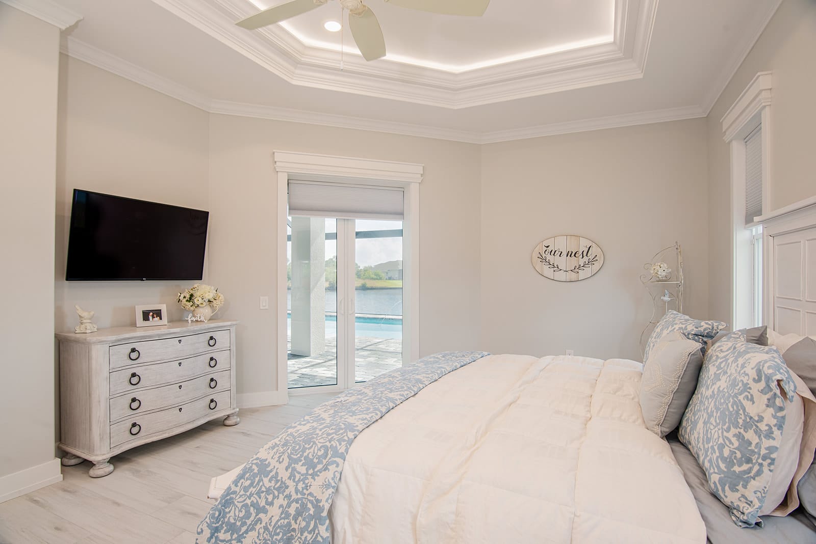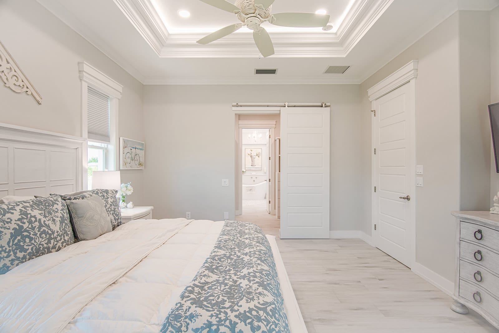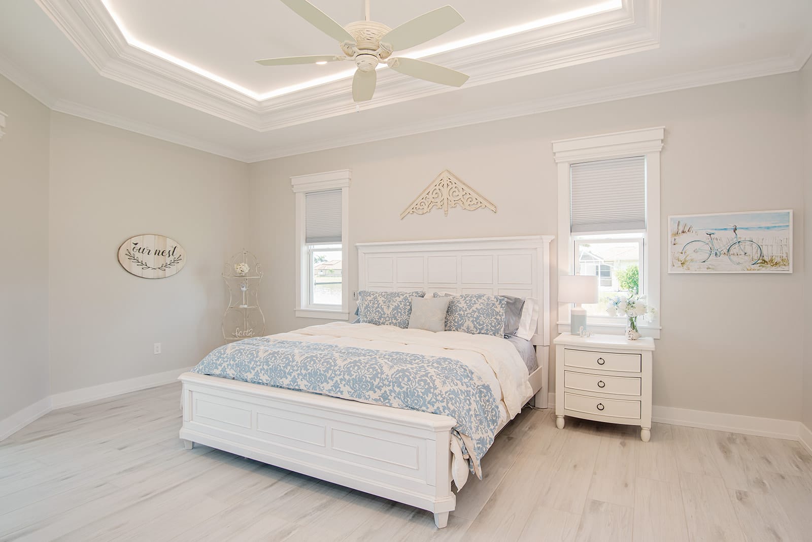 The master suite of the Hayden Key West is designed as a personal getaway, complete with a walk-in closet and spa-inspired bathroom. Its serene atmosphere makes it the perfect space for rest and relaxation.